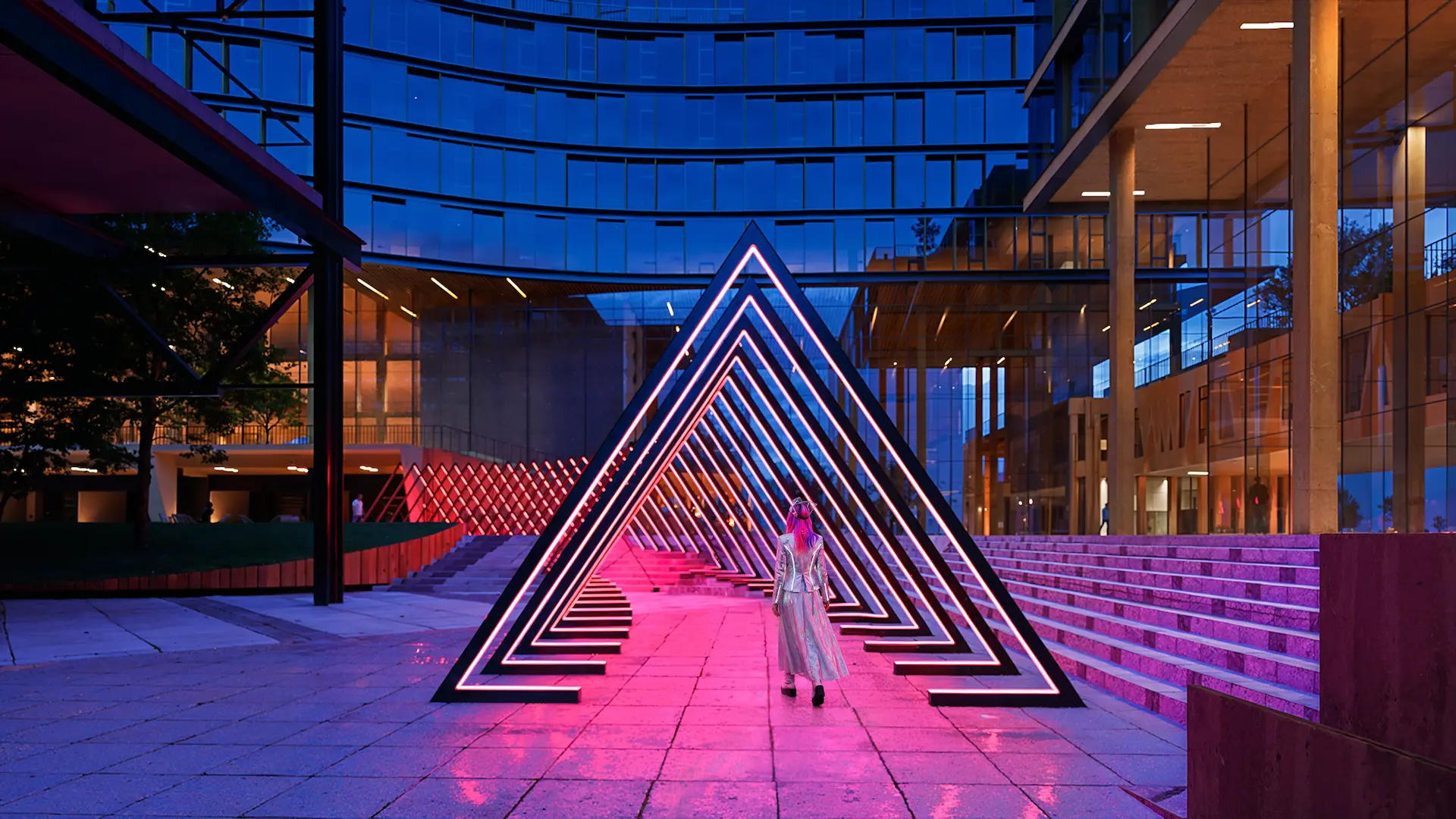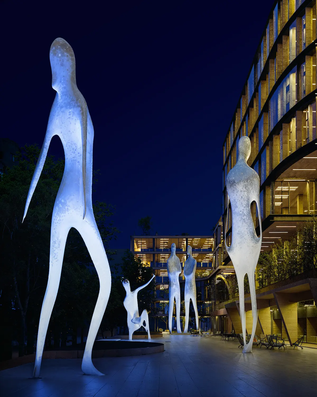 It is designed with keeping flexibility in mind, using bridges to connect offices and laboratories in one cohesive complex that allows easy navigation and interaction between different buildings, promoting a sense of community and collaboration among employees. Each building embodies a unique common interior amenity, allowing for green-inspired and healthy spaces to meet, collaborate and create.