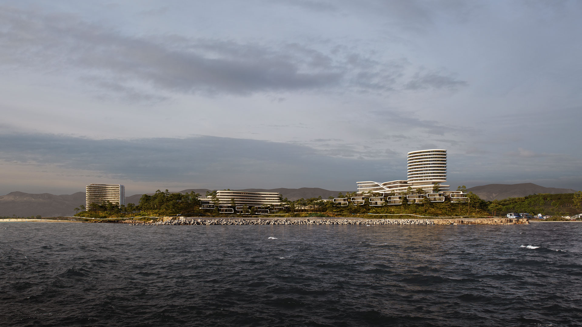 The site itself presented another constraint. With no photography and no drone footage available, our visualization team had to reconstruct the entire geography from scratch. This meant not only modeling the terrain and coastline, but also reverse-engineering the character of local vegetation, road infrastructure, view corridors, and atmospheric conditions. In a market where resorts benchmark against the experiential quality of Aman, Six Senses, and Shilla properties, the visualization deliverable had to convincingly demonstrate something essential: the project’s distinctive relationship to both sea and mountain.
