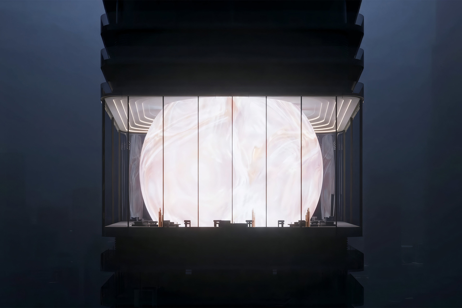 The final teaser animation is built on a single, continuous camera move. The sphere charges, the city falls into darkness, and the building glows. Music shaped the edit’s rhythm from the start, with frame-precise timing driving the relationship between the eclipse moment, the light shift, and the musical beat.